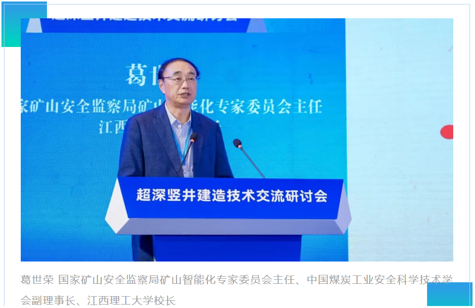 国家矿山安全监察局矿山智能化专家委员会主任、中国煤炭工业安全科学技术学会副理事长、江西理工大学校长葛世荣作了题为《深地矿产开发提升运输关键技术》的报告,介绍了深竖井建设中各类提升运输设备的实际应用效果,交流了超深竖井提升装备的未来发展方向。